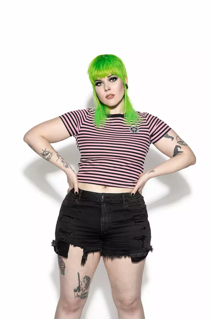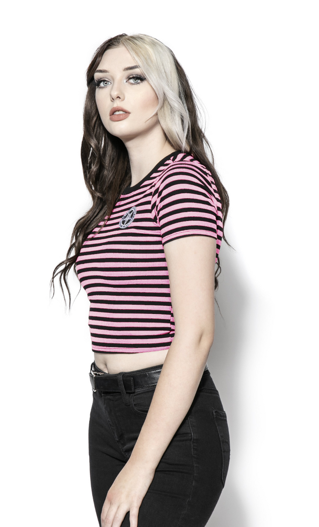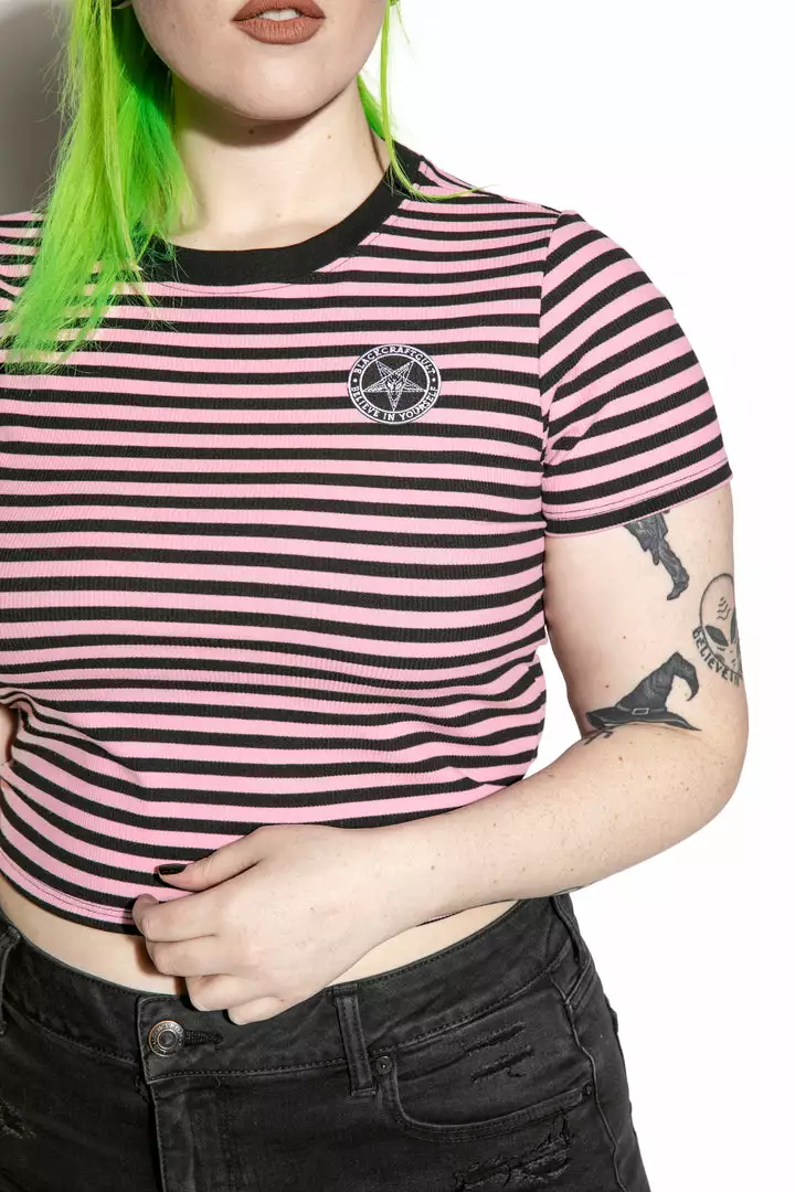 ACDC Believe In Yourself – Pink Striped Women’s Crop Tee Womens