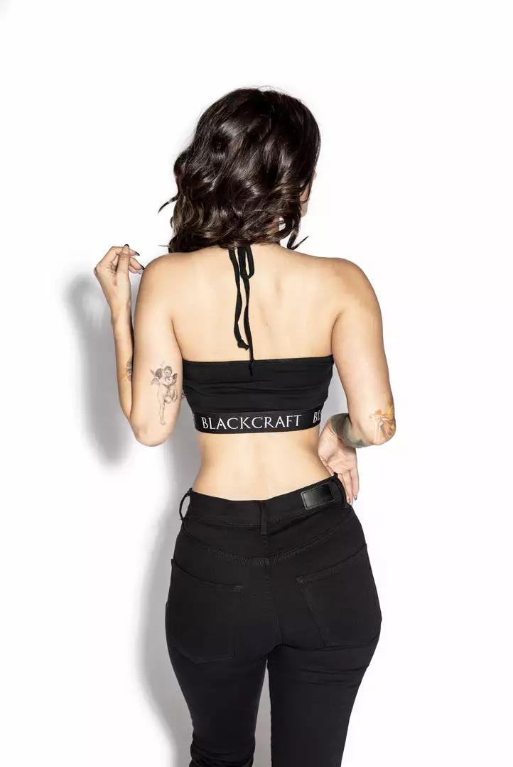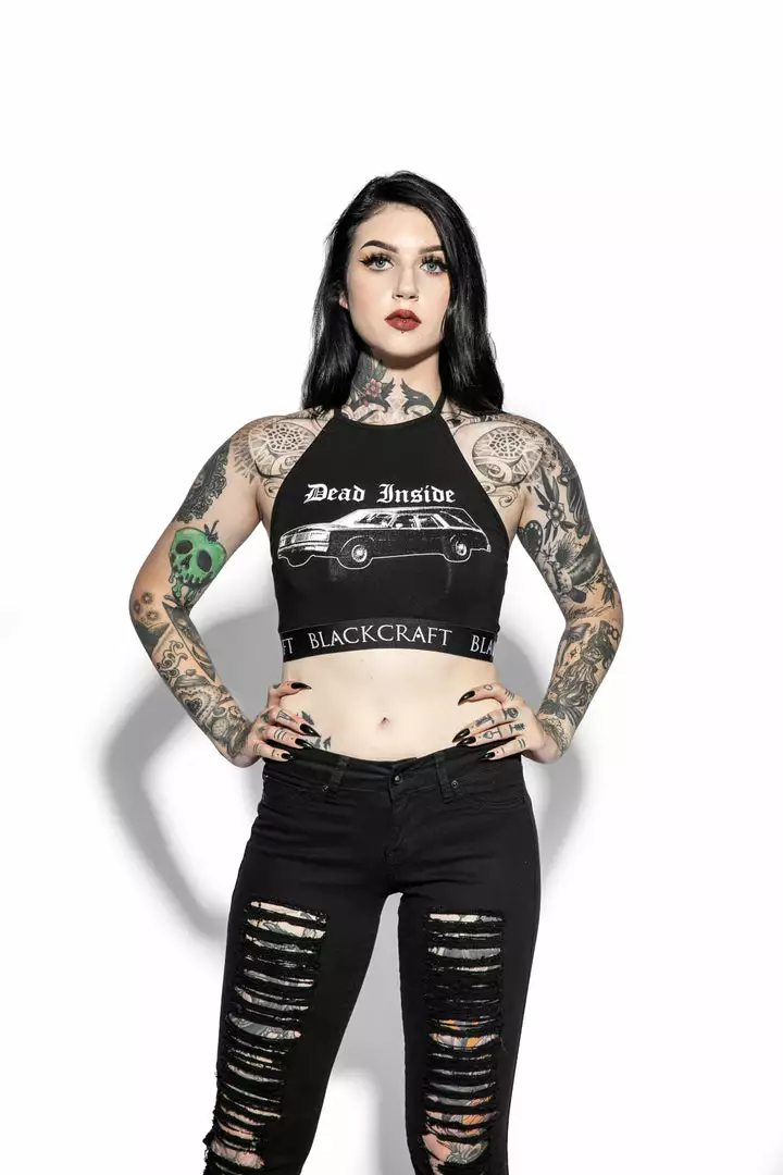 Halter crop with Blackcraft waistband and Dead Inside graphic on the front.