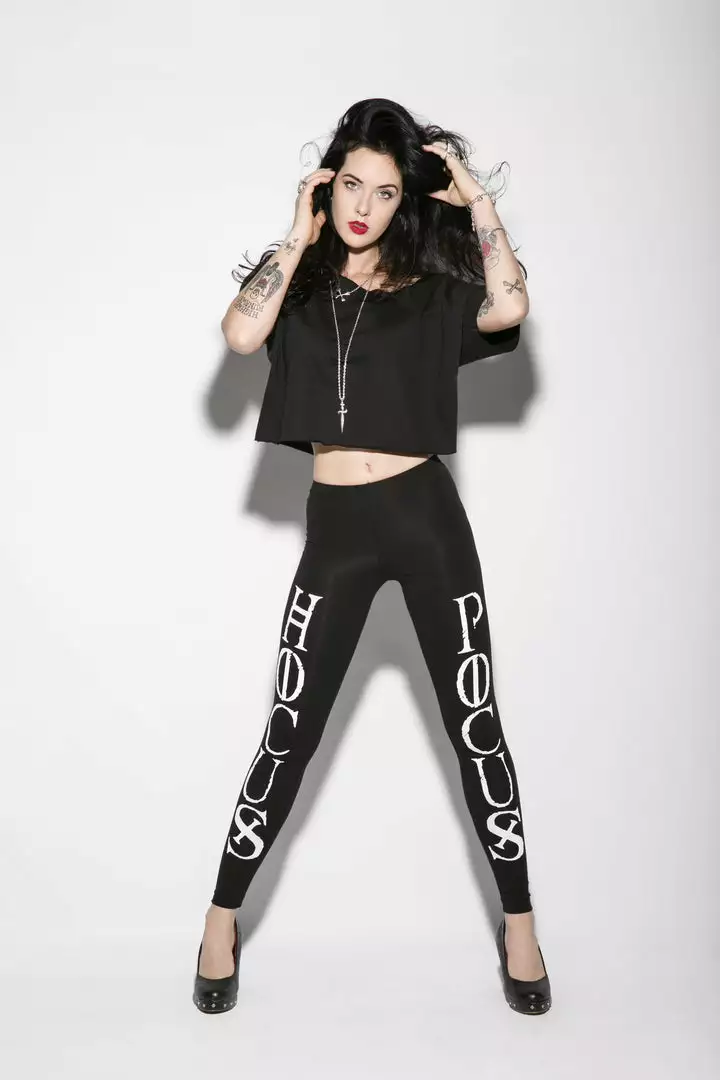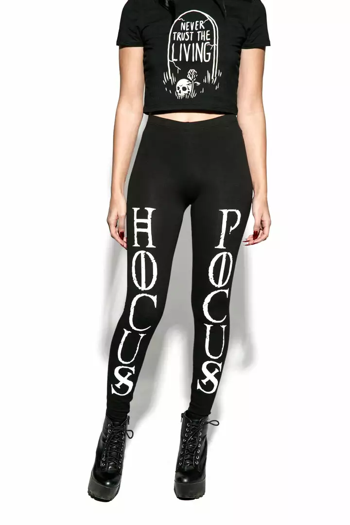 Women’s Leggings with Hocus Pocus print down the front of the legs.