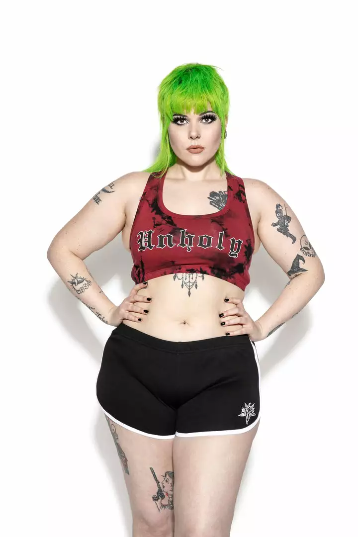 Form-fitted silhouette, racerback, and elastic bottom opening.