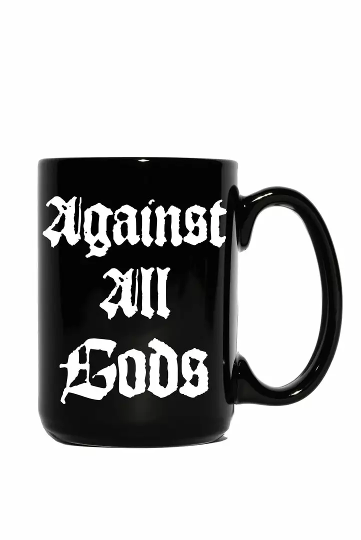 “Against All Gods” design printed on one side.