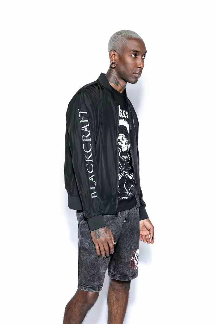 Features: Front zip. Side pockets. Ribbing at collar, cuffs, and hem. Unlined.