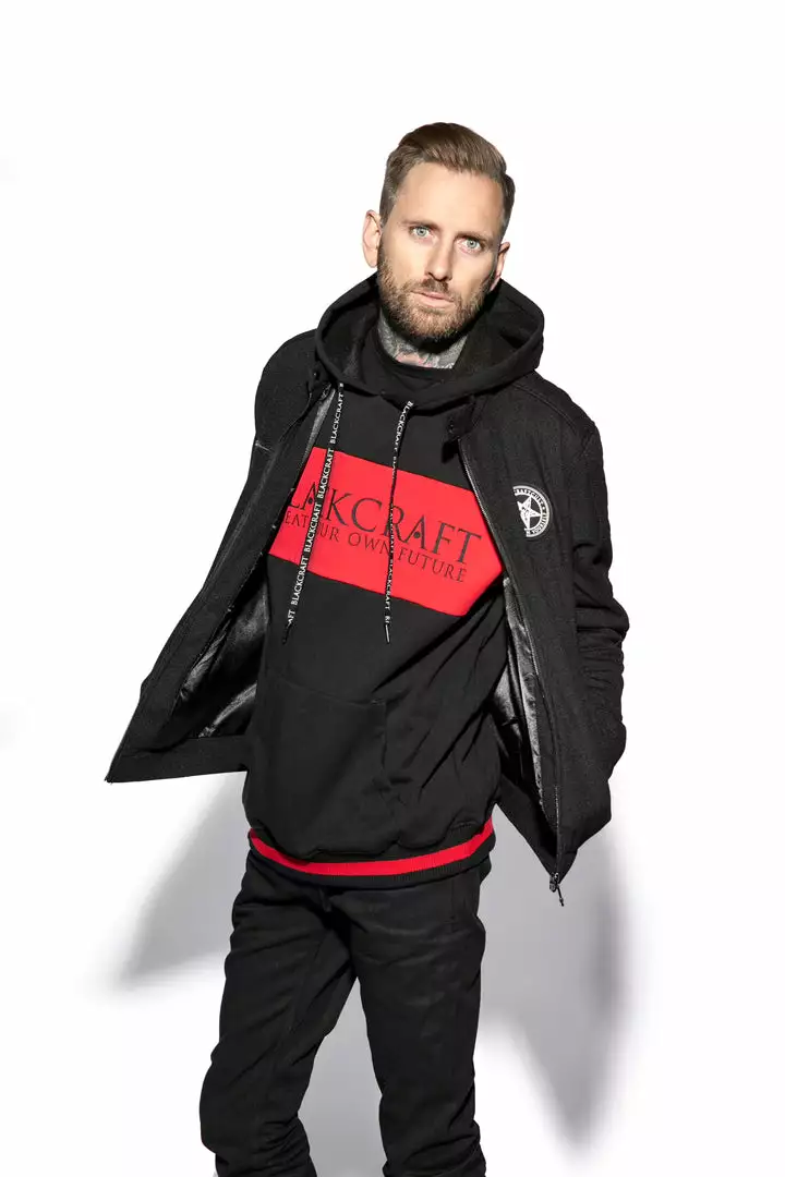 Custom BlackCraft labels sewn on inside left chest pocket and inside neck.