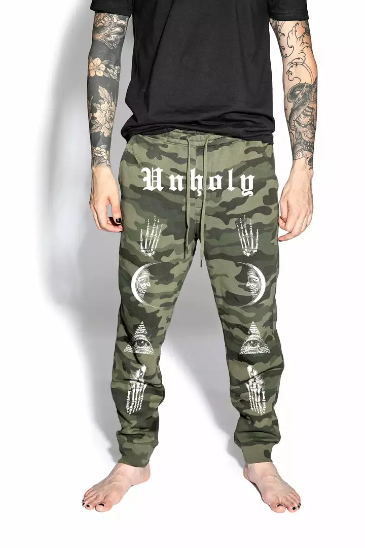 Slim fitting with tapered ankle. 80% cotton 20% polyester.