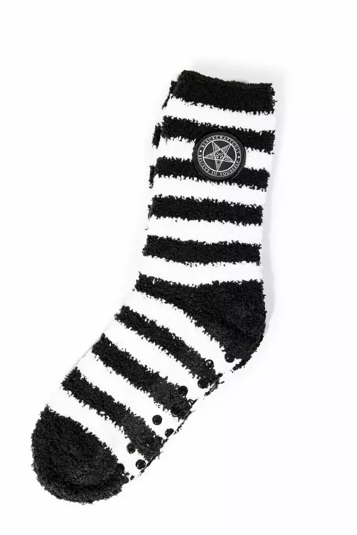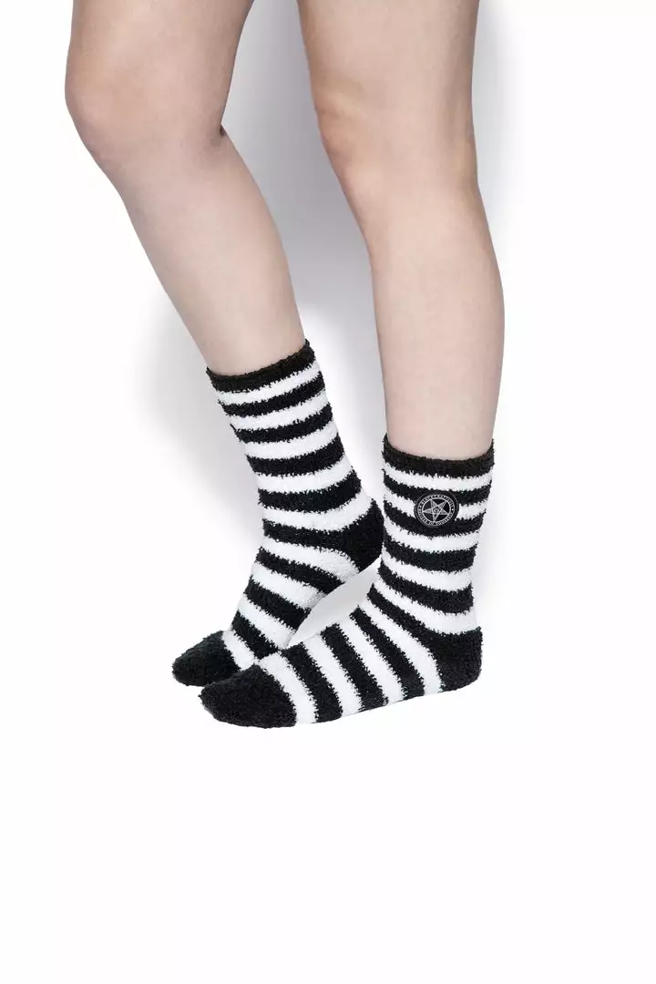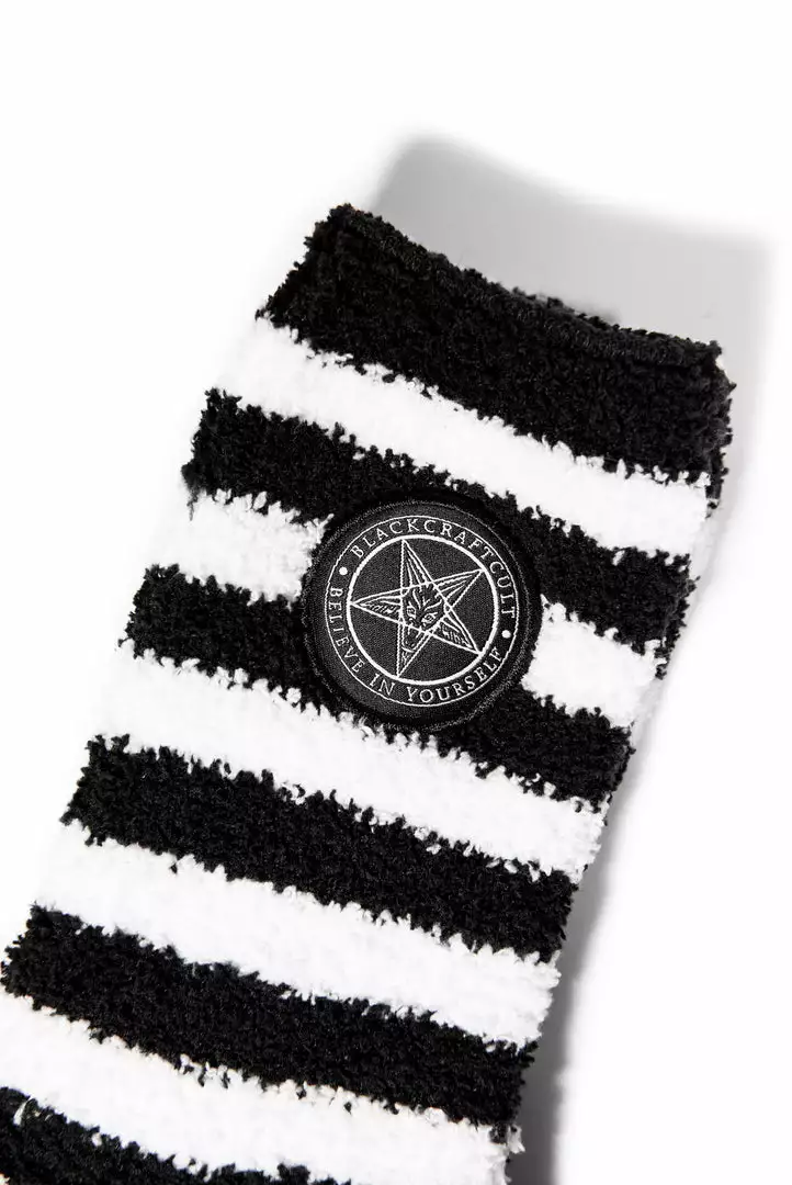 Long cozy socks with silicone grips on the soles and Believe in Yourself patch.