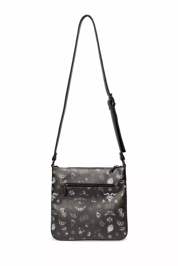 Passport crossbody with all over Tonal Flash print. Printed area features pebble leather and has a front pocket and zipper on the back. Zipper closure on top with spacious interior and adjustable shoulder strap. Custom interior lining.