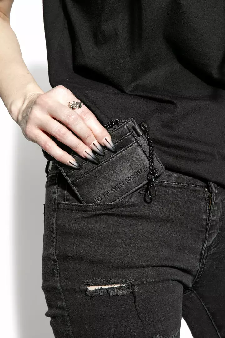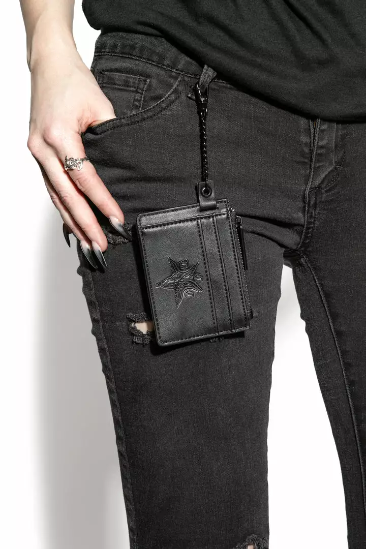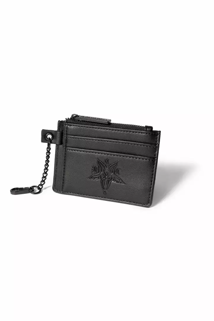 BCC Goat embossed card case with Blackcraft logo embossing on the back. Gunmetal finish chain and lobster claw to attach to belt loops, bags, etc.