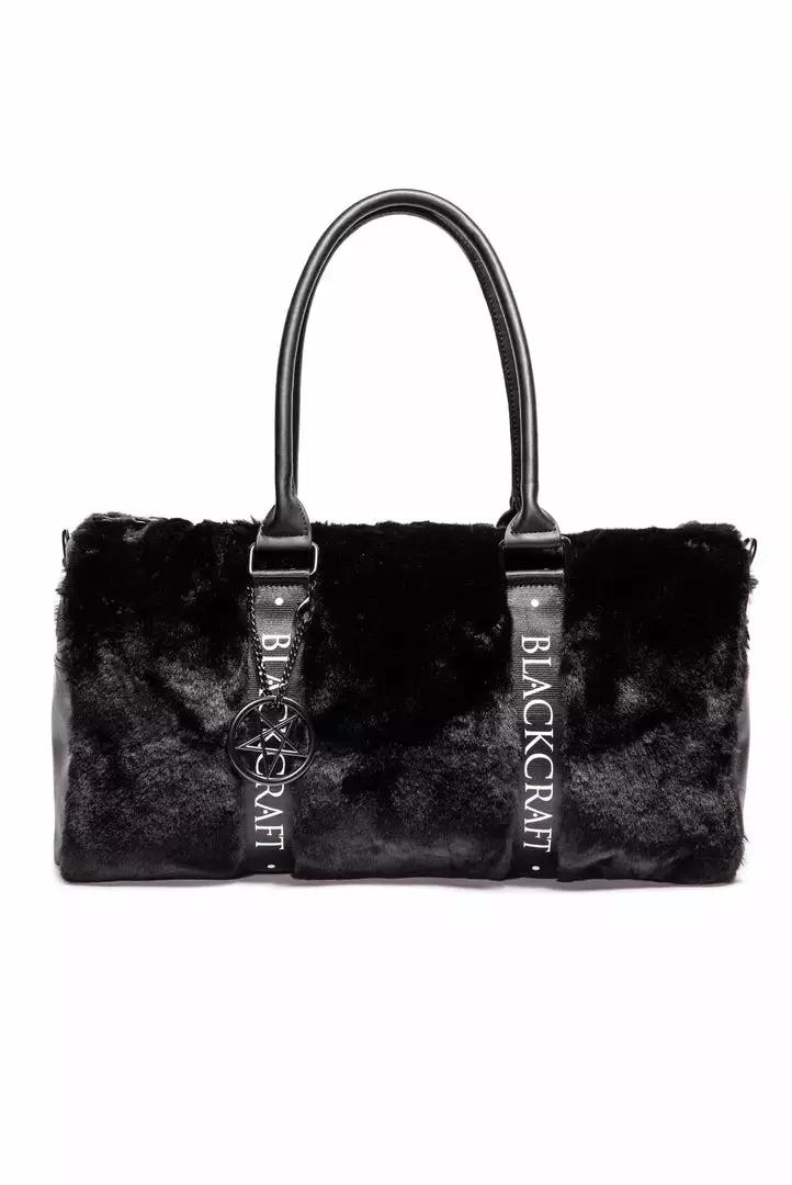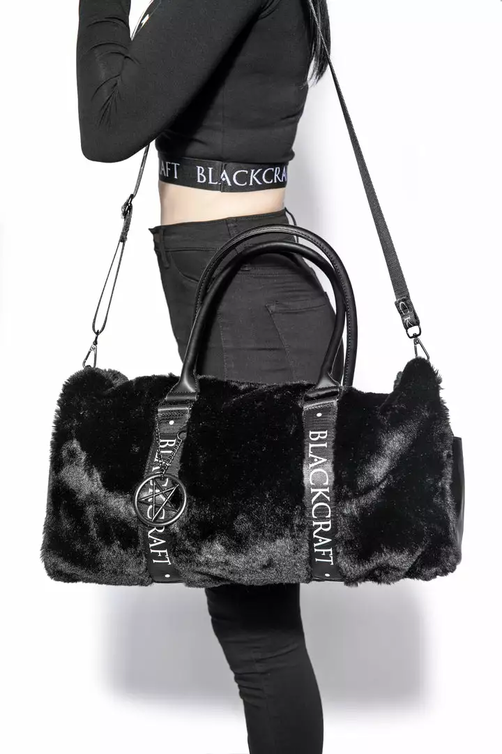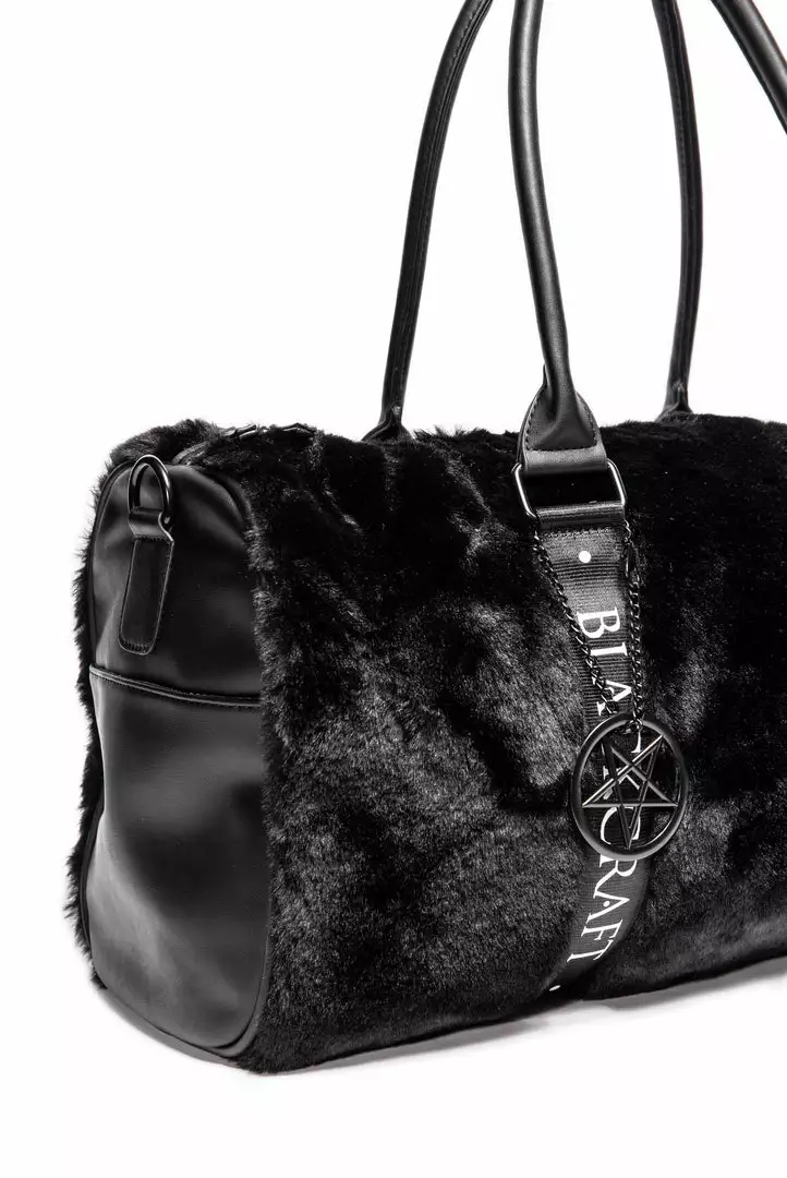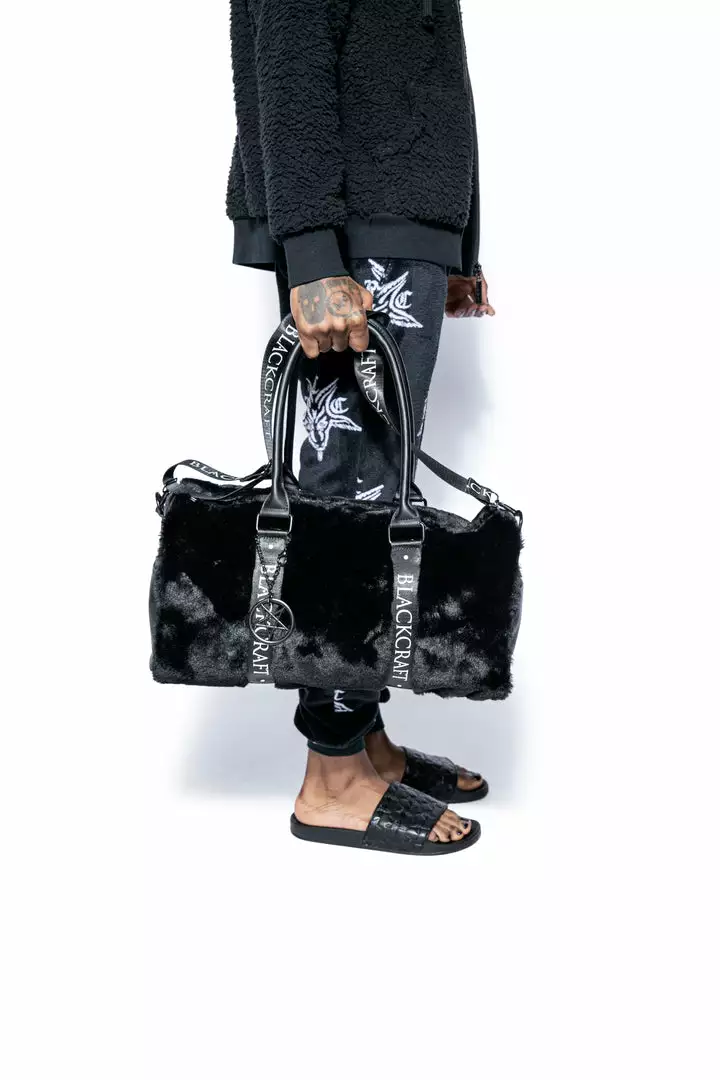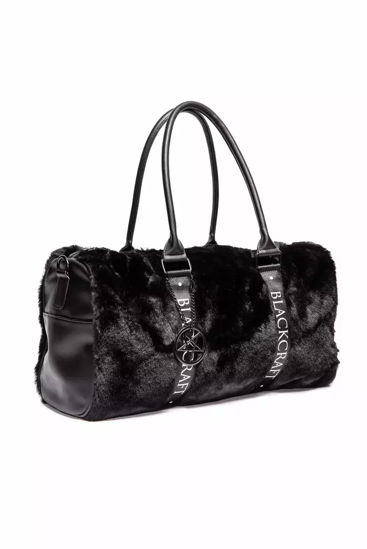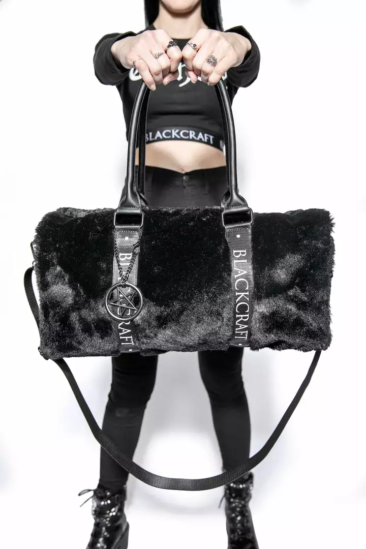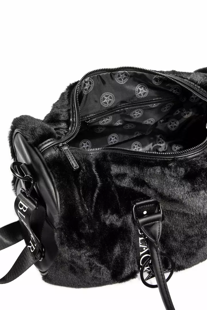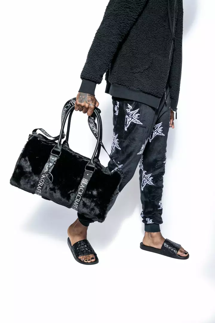 The all black essential weekend bag. Perfect for traveling, this spacious bag has handle straps and branded logo strap for two ways to hold. Features branded strap details, custom lining, and interior pockets. Includes pentagram pendant.