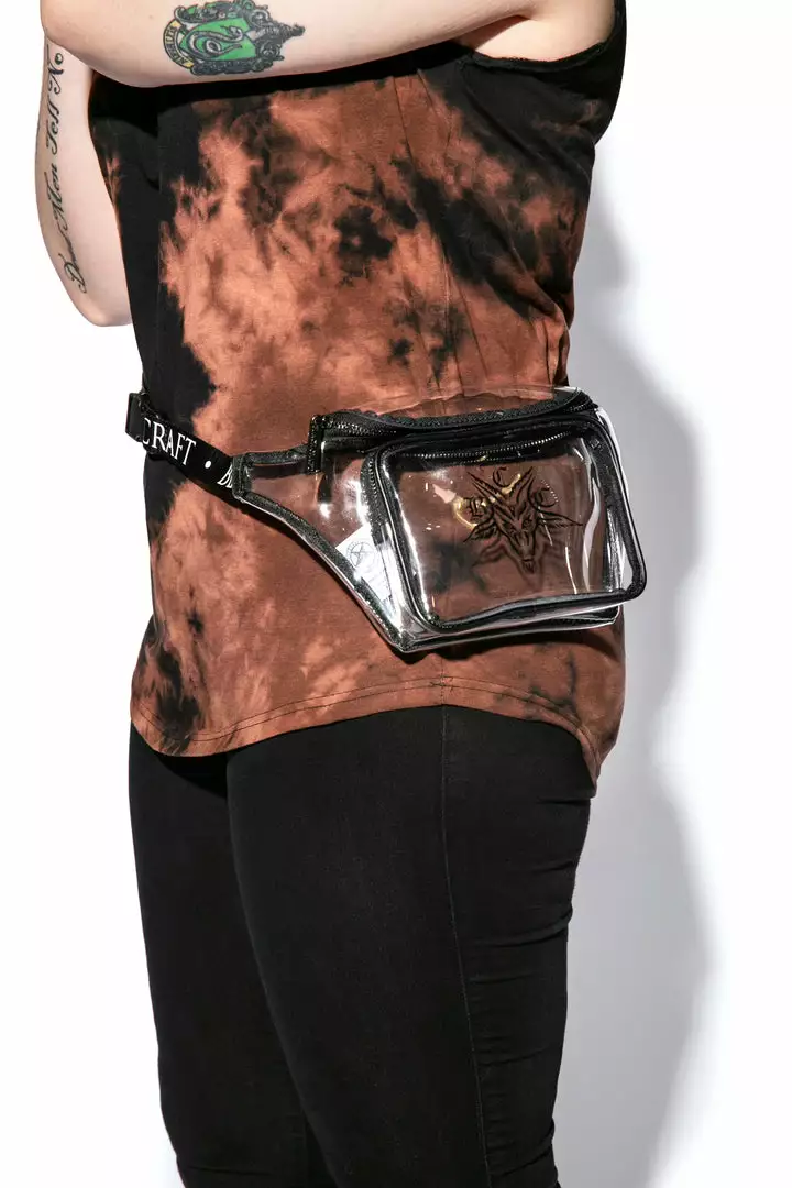 Premium heavy PVC clear material fanny pack with faux leather trim. Adjustable Blackcraft logo webbing straps with gunmetal finish Blackcraft zippers.