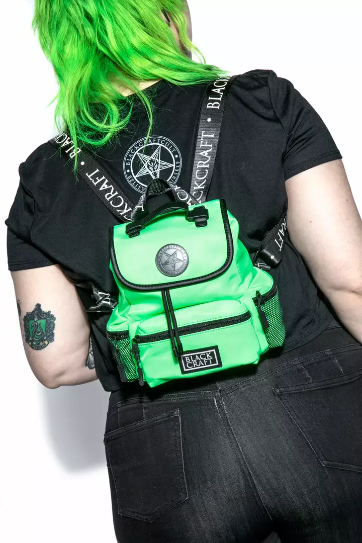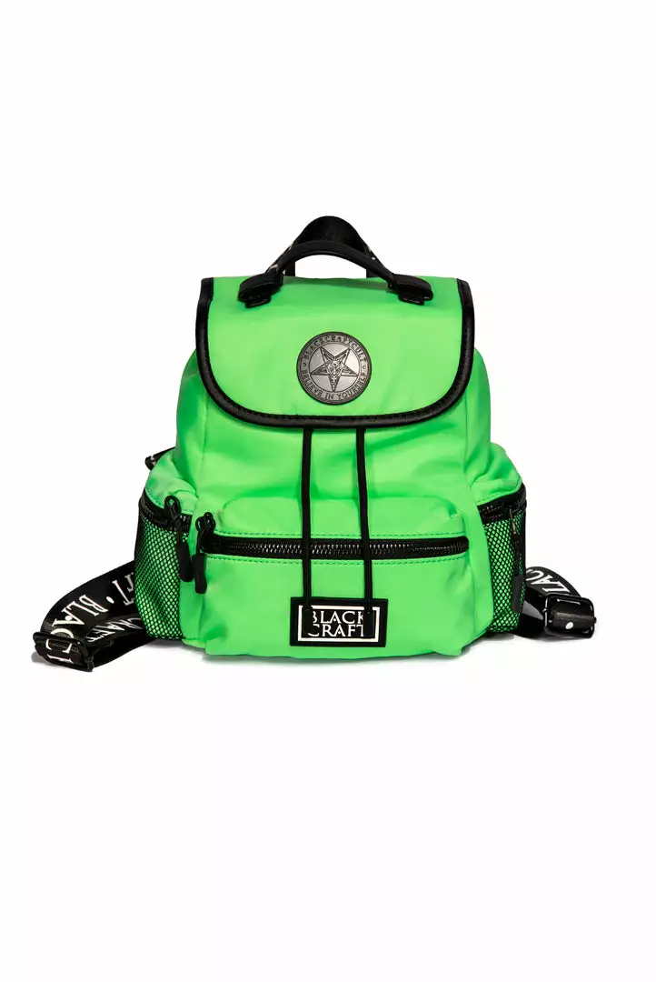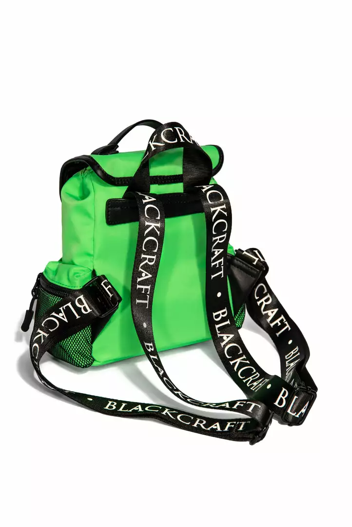 Nylon mini backpack with drawstring closure. Adjustable Blackcraft straps and faux leather details. Includes 3 small outer pockets with zip closure and 3 interior pockets with 1 zip closure. Features custom interior lining and Blackcraft logo hardware.