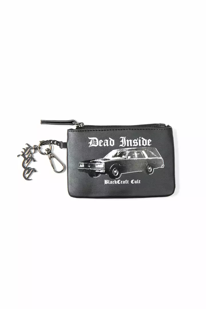 Faux leather coin purse keychain. BCC charm gunmetal hardware. Dead Inside print.
