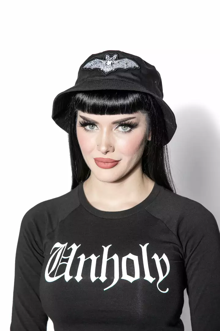 Bucket hat with Batcraft patch sewn on the front.
