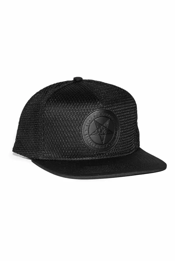 Mesh snapback flat cap with PU leather Believe in Yourself patch.